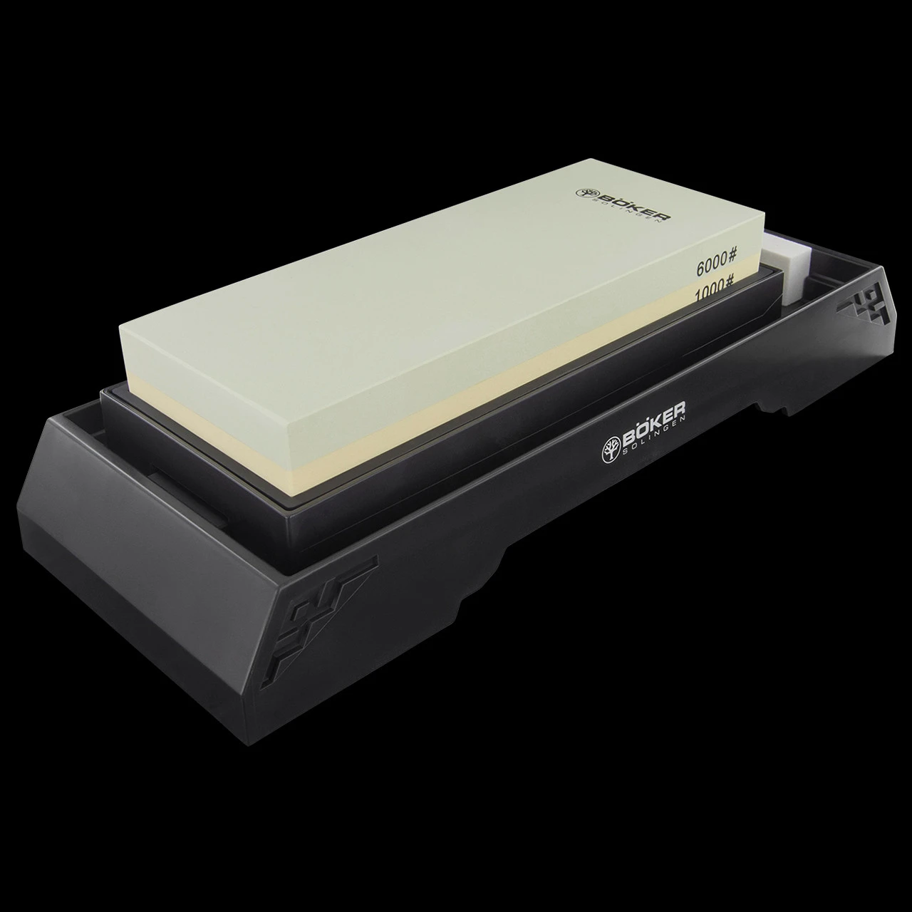 - The 1000/6000. The combination of 1000 grit and 6000 grit is the choice for perfectionists and non-conformists when it comes to sharpness. The 1000 grit stone, a closed cutting edge can be quickly restored on moderately worn blades. The 6000 grit side ensures an edge of the highest fineness in the second step.