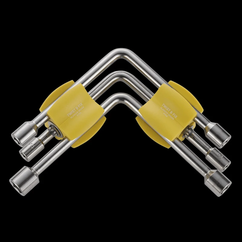 Designer Ryan Glasgow has always been fascinated by the simplicity and usability of a bent-pin couplerâa form of old mechanical linkage. In his shop in Portland, Oregon, he spent years tinkering, trying to apply it to a multi tool in a way thatâs fun to use and highly useful. The end result: the Twist & Fixâ˘. Instead of being housed in fixed, eternal bearings, each element in the tool set revolves around a central axle, lengthening the tool you need and keeping the others out of the way. Theyâre held together with a low-profile frame, snapping in and out with ease so your workflow remains uninterrupted.