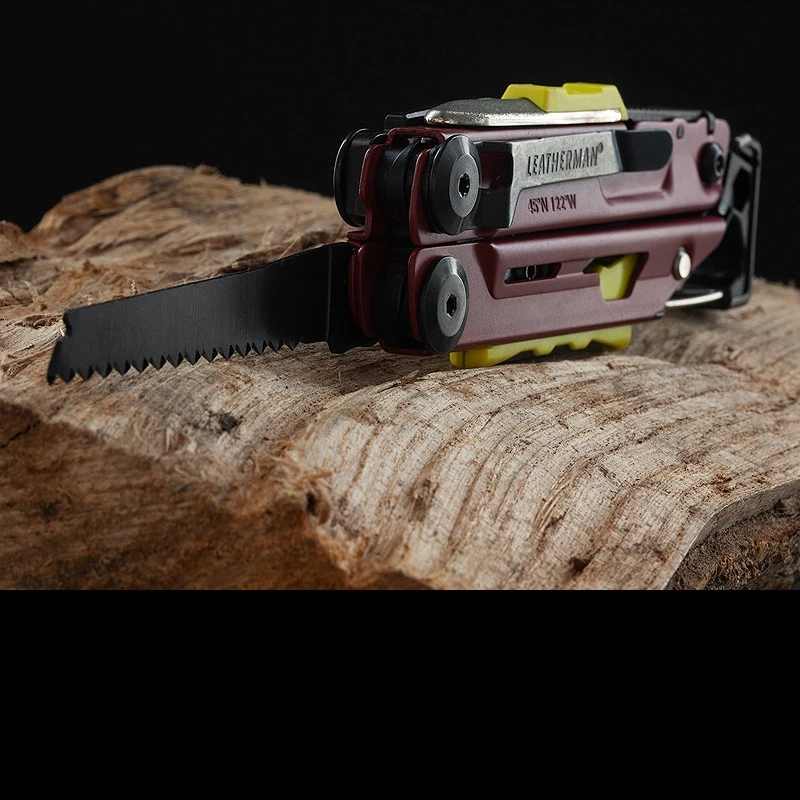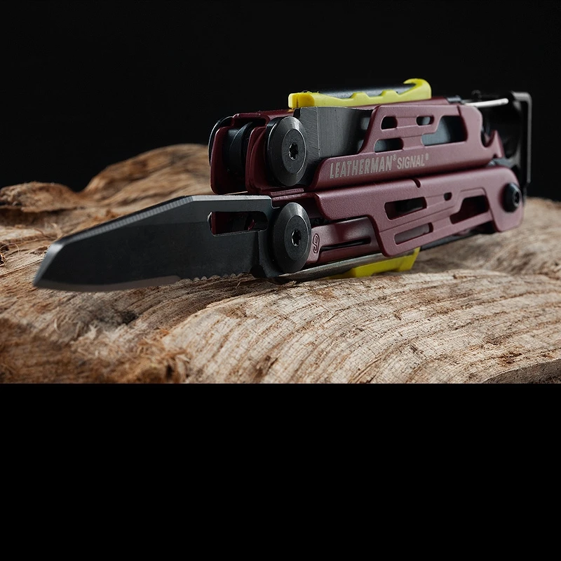 Lose yourself in the outdoors. In the all-new Signal, Leatherman’s traditional functional tools like pliers, saw, can and bottle opener, awl, a variety of hex and Leatherman bit drivers, and combo knife blade pair with new preparedness features like a shaped diamond coated sharpener for maintaining your straight and serrated blade, fire-starting ferro rod, and an emergency whistle. Stay ready for the expected (and unexpected) no matter where you are with everything you need right on your belt. This version has a red handle and black coated blades and tools.