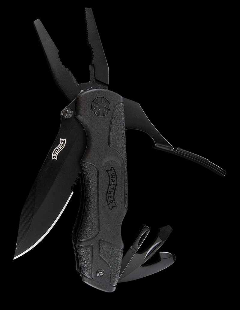 Knife, multi-tool, pliers…call it what you like, it doesn’t alter the fact that its damn useful! The Walther MTK 2 (Multi Tac Knife) not only has a black coated, 440C stainless steel blade but also boasts a bottle opener, can opener, awl, pliers, screwdriver tip, glass breaker and screwdriver bit set.